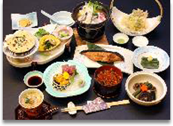 山の幸、海の幸、里の幸、川の幸をふんだんに使い、新鮮な食材に合う調理法・味付けで飽きのこない料理をお召し上がり下さい。
